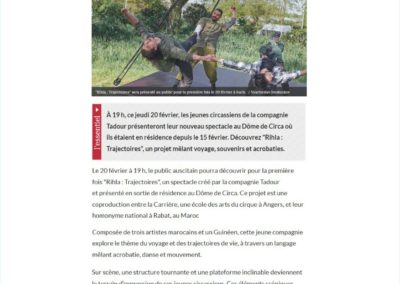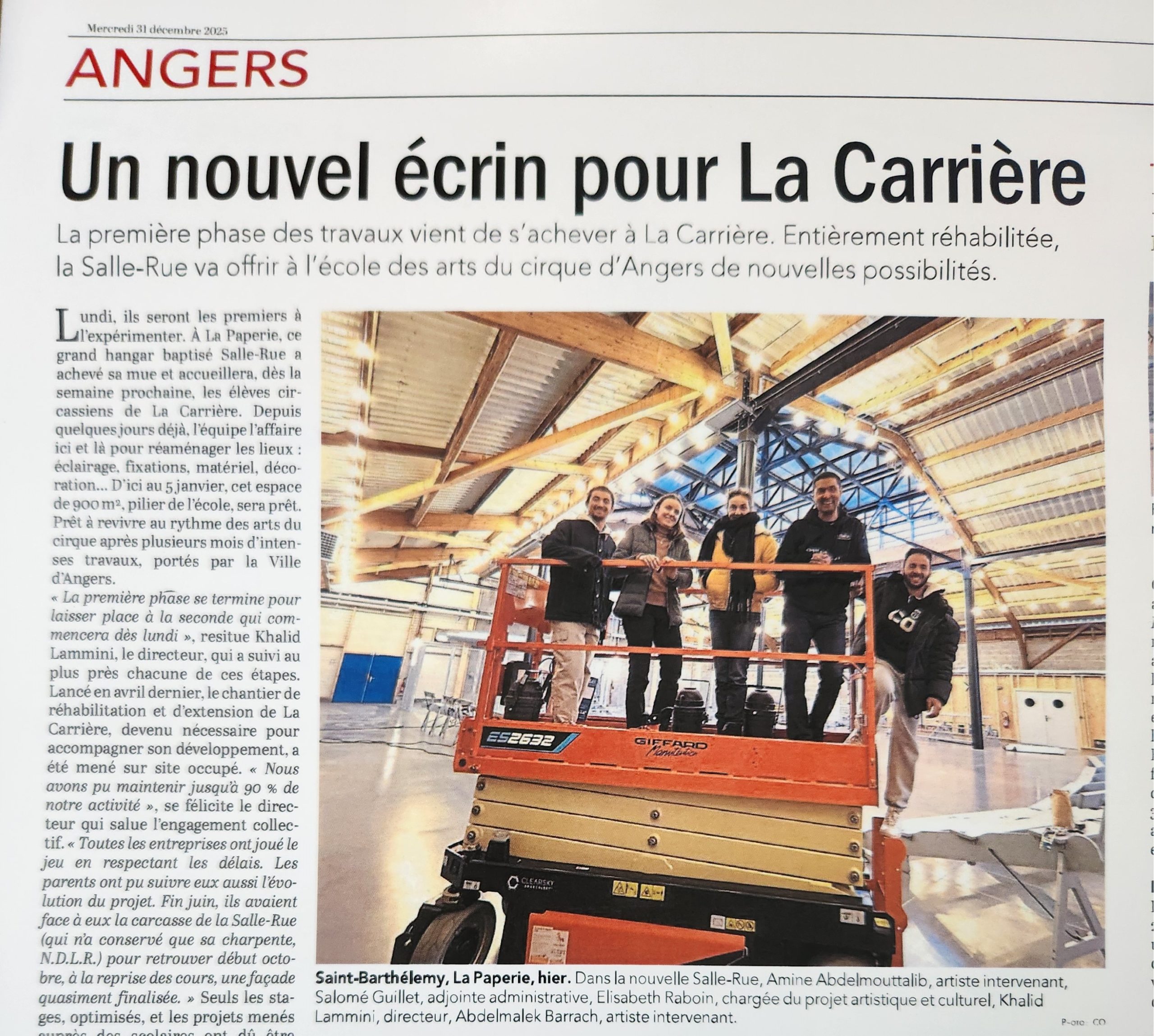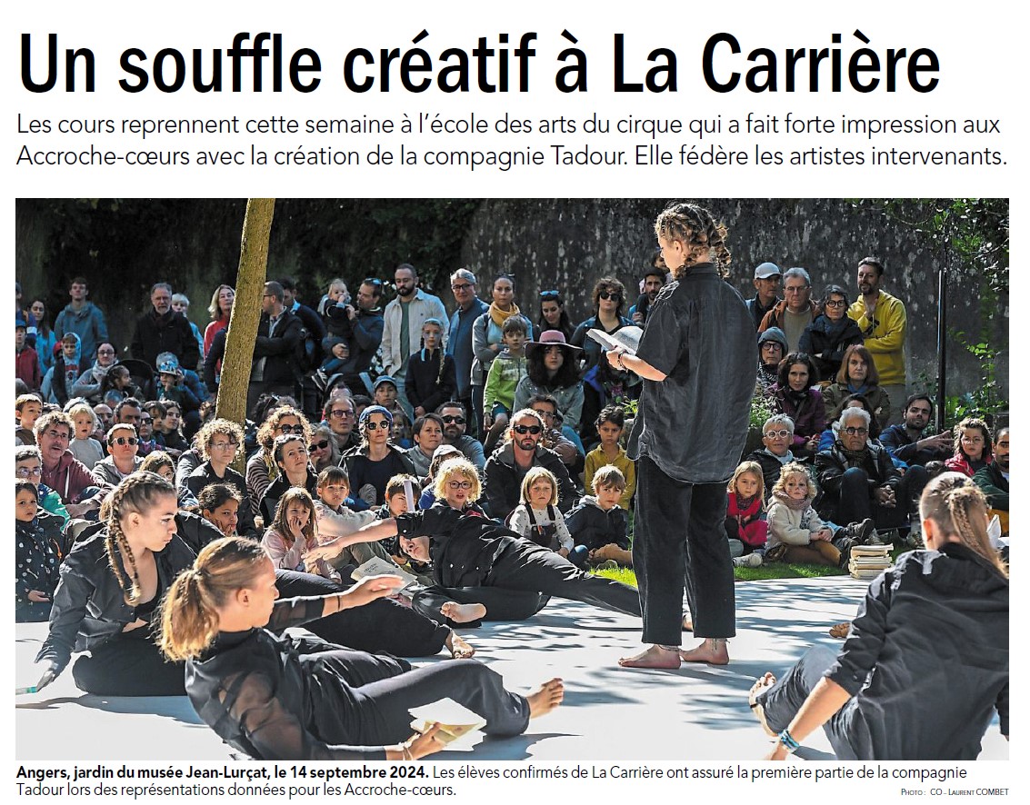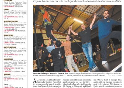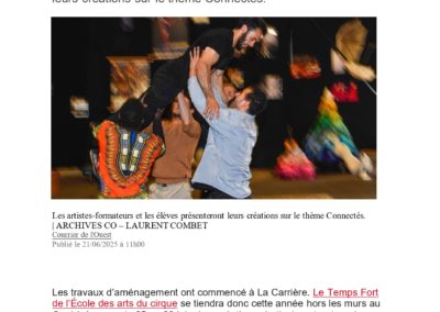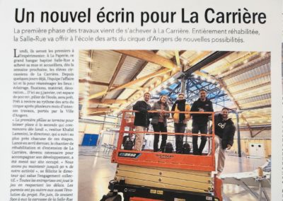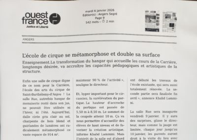 La Carrière vue par la Presse On parle de nous ! Articles saison 2025-2026 Actualité Angers Villactu : Près d’Angers, l’école des arts du cirque entre dans une nouvelle ère OF l’école de cirque se métamorphose 6 janvier 2026 CO un nouvel écrin pour la carrière 31 décembre 2025 Angers magazine Article travaux oct 2025 Articles saison 2024-2025 CO école travaux 26 juin 2025 CO école travaux 2 Article paru dans le Trégor site information et actualité des Côtes le 20 aout 25 Auch février 2025 CO 21 JUIN 2025 TFC AU QUAI Article Haute Anjou février 2025 st Martin des Bois CO 15 septembre 2024 CO 15 septembre 2024 CO vendredi 14 juin 2024 La Carrière Articles saison 2023-2024 Article CO 181023 Articles saison 2021-2023 Article TFC juin 2023 CO Kidiklik 2023 Article CO Nouvelle équipe la carrière Novembre 2022 TFC KIDIKLIK JUIN 2023 Articles saison 2020-2021 2020-09 Courrier de l’Ouest 2021-02-18 Ouest France 2021-02-13 Courrier de l’Ouest 2021-01-09 Courrier de l’Ouest 2020-11 Vivre à Angers 2020-11 Anjou_&_vous_Magazine 2020-10 Ouest France Articles saison 2019-2020 2020-06-26 Ouest France 2020-06-18 Courrier de l’Ouest 2020-05-26 Ouest France 2020-02-20 Ouest France 2020-01-31 Courrier de l’Ouest Articles saison 2018-2019 AngersMAVILLE83_OCT18 2019-06-27 Courrier de l’Ouest 2019-01-26 Courrier de l’Ouest 2019-01-18 Courrier de l’ouest 2019-01-23 Ouest France 2019-01-07 Courrier de l’Ouest Articles saison 2017-2018 OF 15-08-17 CO 10-09-17 OF 21-12-17 OF 19-6-2018 OF 28-6-18 8-07-18 YAIR of CO-6-10-17 CO – 22-06-18 6-9-17AC co dimanche 17 juin 18 art champ hors champ Angers maville 13juin LBA CO mercredi 4 juillet 2018 carrièreCADRE
